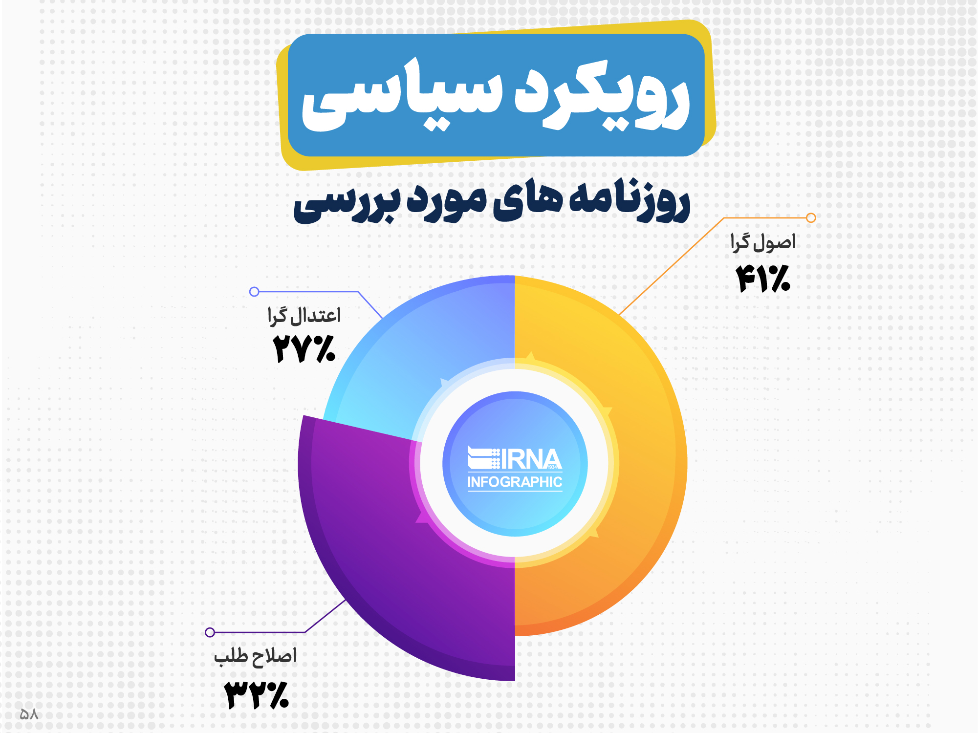 ۴۱ درصد روزنامههای مورد بررسی دارای رویکرد سیاسی اصولگرایی، ۳۲ درصد دارای رویکرد اصلاحطلبی و ۲۷ درصد اعتدالگرا بودند.